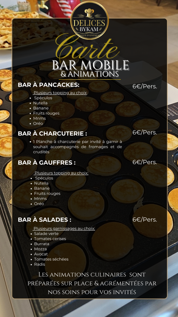 de quoi animer vos événements réservation au 07.77.80.36.69 ou par mail à delicesbykam@outlook.fr