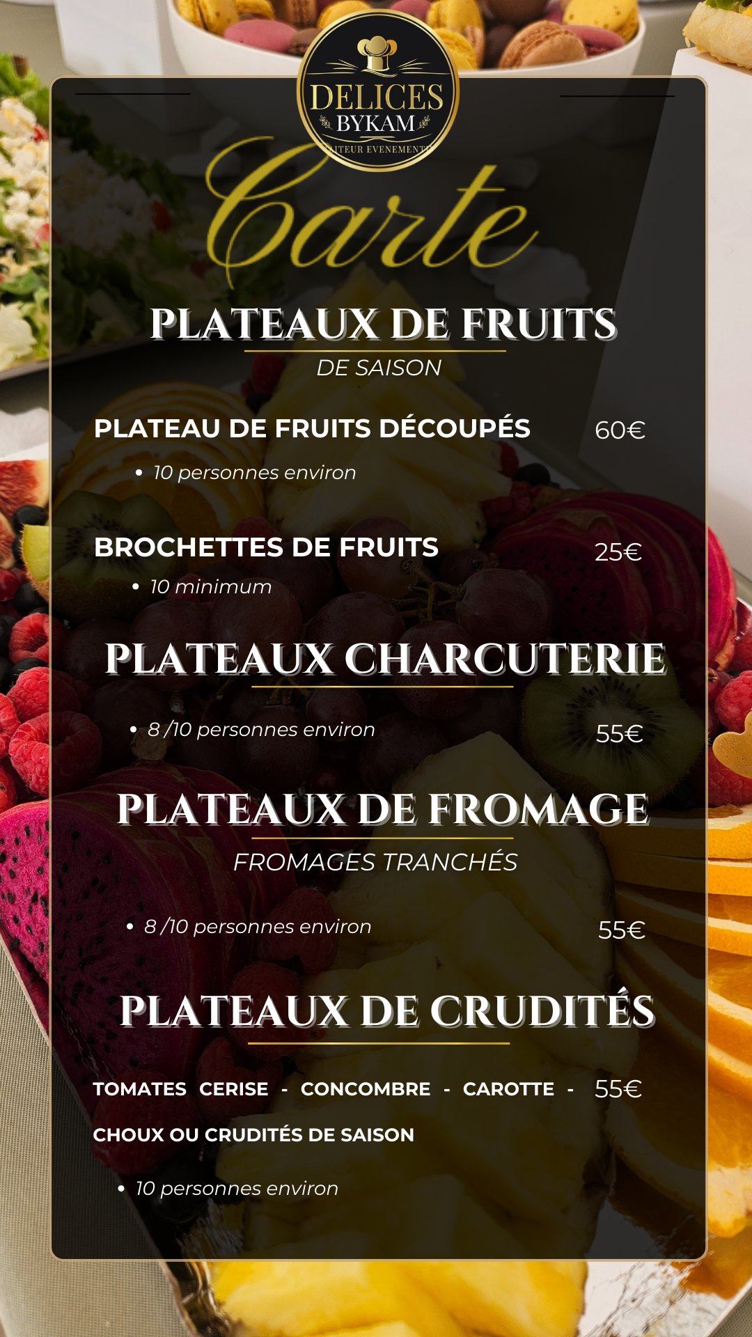 Vous pouvez aussi nous joindre en journée sur notre ligne direct au 07.77.80.36.69, par mail à delicesbykam@outlook.fr ou bien sur nos réseaux sociaux nous répondrons rapidement à votre demande
